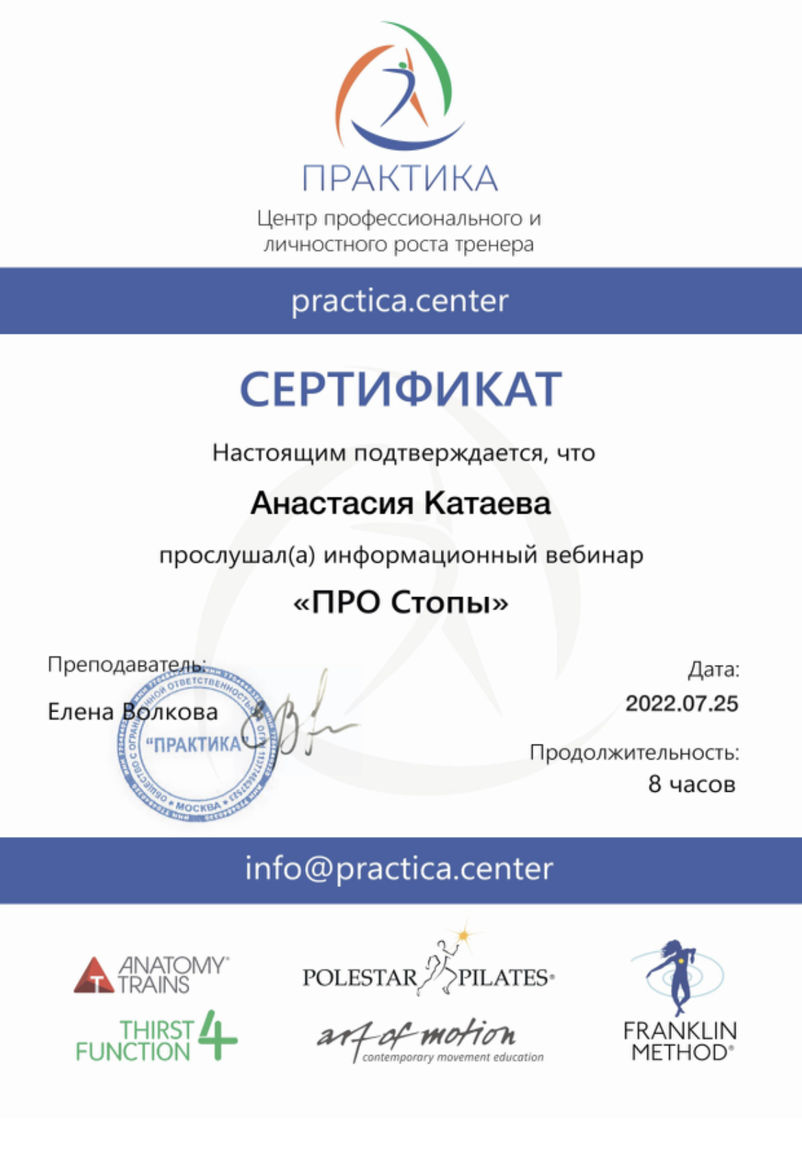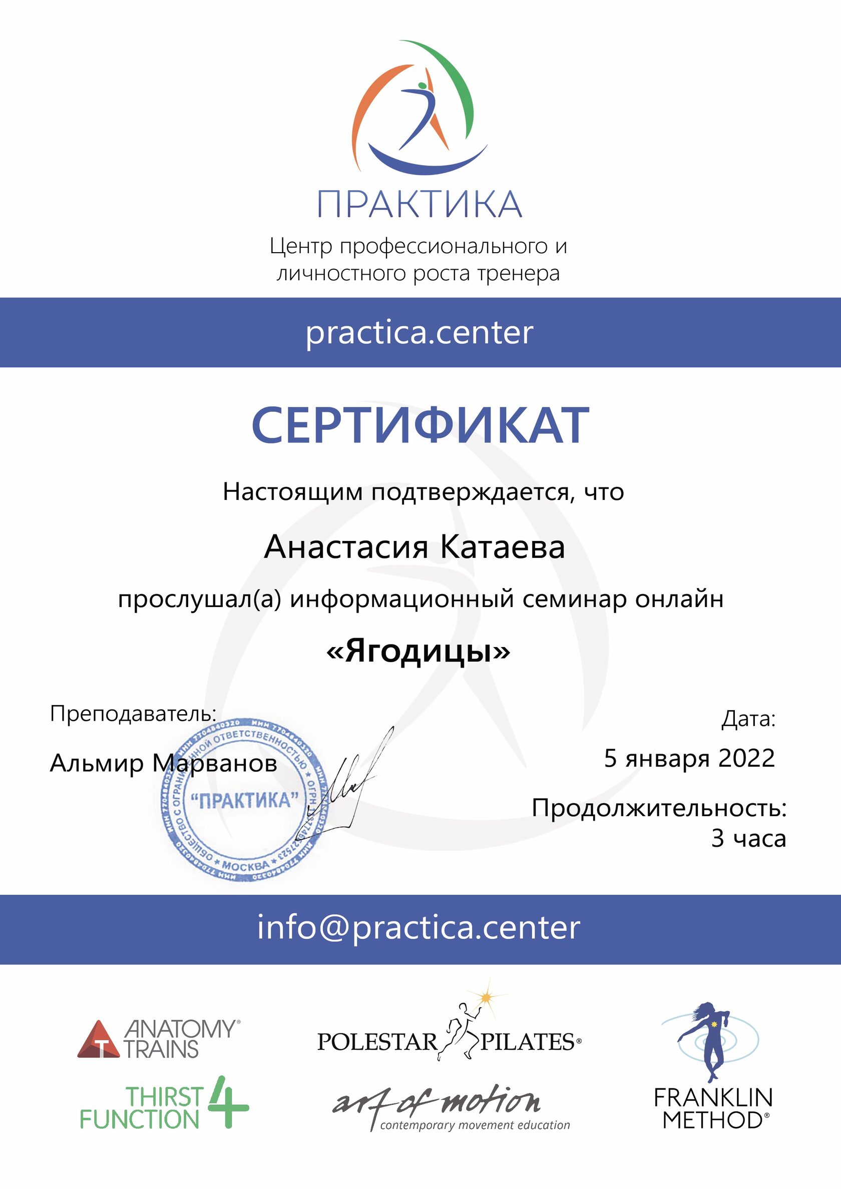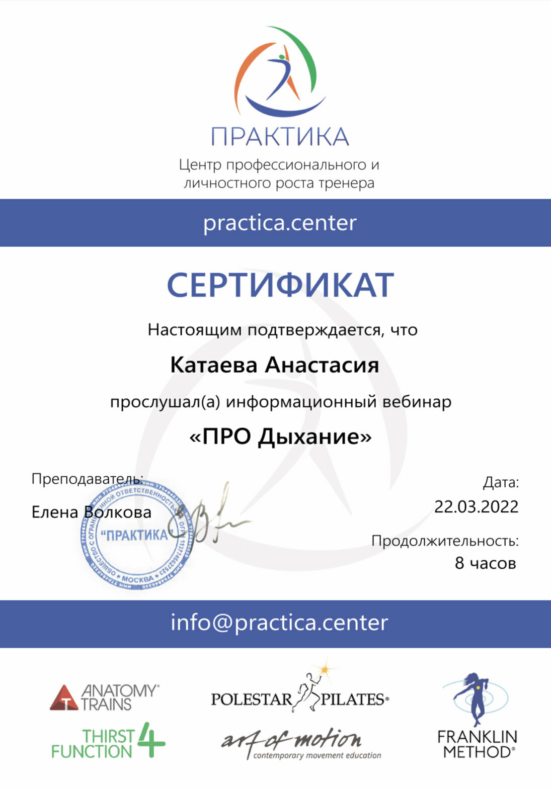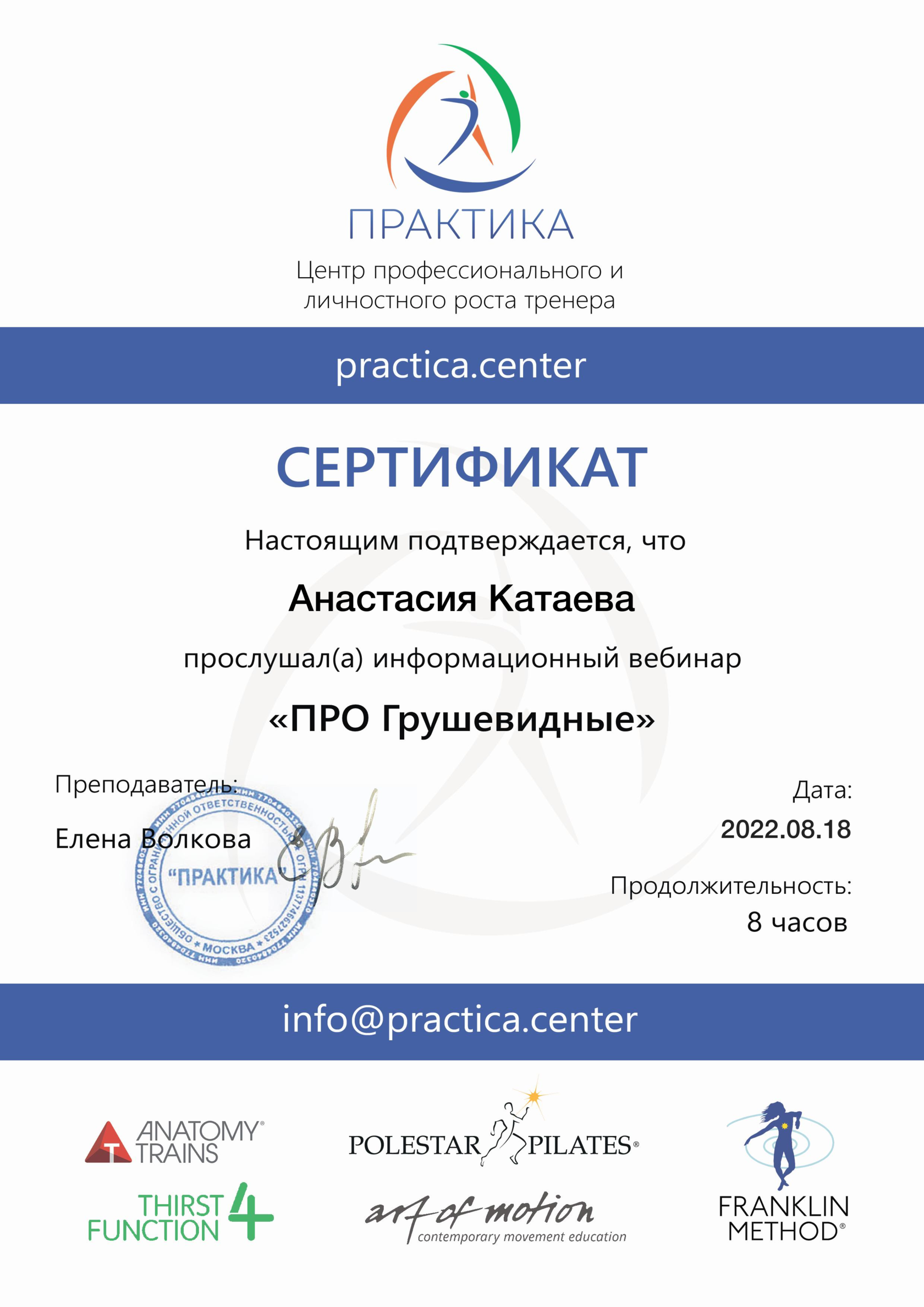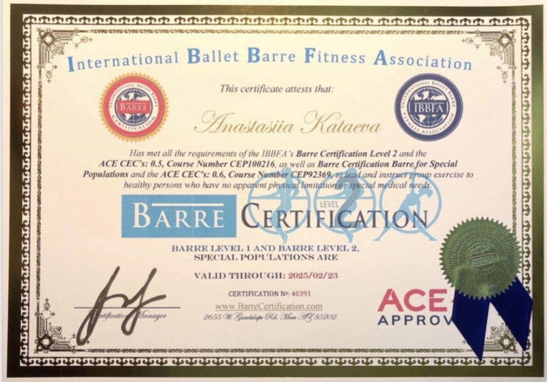 Педагог-хореограф, Международный сертифицированный тренер IFBBA (International fitness ballet barre association), Коуч, Нутрициолог, основатель проекта Баббалет по созданию стройного и здорового тела